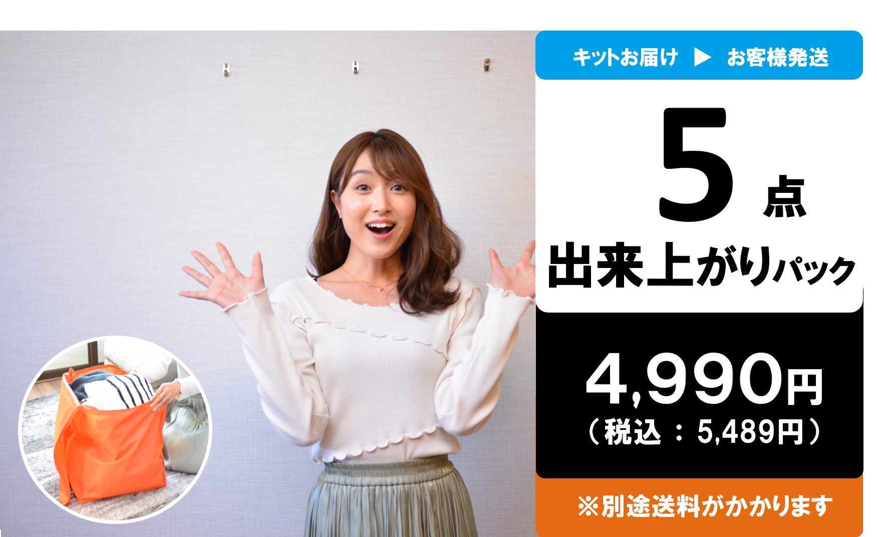 ご注文から数日でご自宅のポストに配送キットをお届けいたします。届いたキットの中にある不織布のバッグに最大規定点数まで衣類を詰め